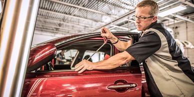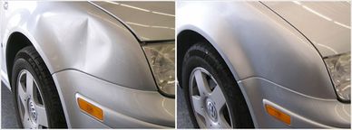 Paintless dent removal is a process that allows us to remove dents, dings, and other body blemishes without the need for paint or body fillers typically used by traditional body shops. This process enables us to restore your vehicle to its original condition at a fraction of the cost and turnaround time of conventional body shop repair work.